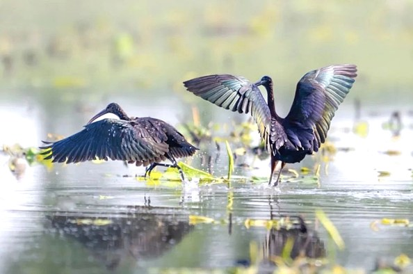 展览以“生境”为脉络,精心划分城市绿地、山地、湿地三大主题展区——城市绿地展区聚焦麻雀、喜鹊等“城市居民”,揭秘它们如何在公园绿植与楼宇间安身立命;山地展区通过画眉、红嘴蓝鹊的鲜活影像,展现山林鸟类与自然共生的奇妙图景;湿地展区则以永定河畔的白鹭、鸳鸯为引,诉说着水域生态对候鸟迁徙的重要意义。