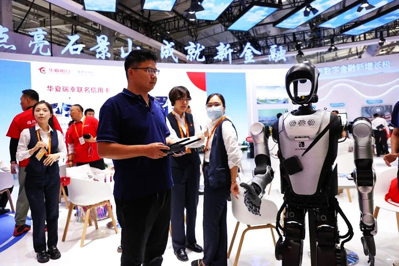金融展台在首钢园6号馆“C位”亮相。交互机器人为与会观众讲述现代金融发展新成效,系列金融主题日活动带来精彩互动还有“点石成金”主题信用卡服贸会特别版消费优惠等一众新鲜体验。