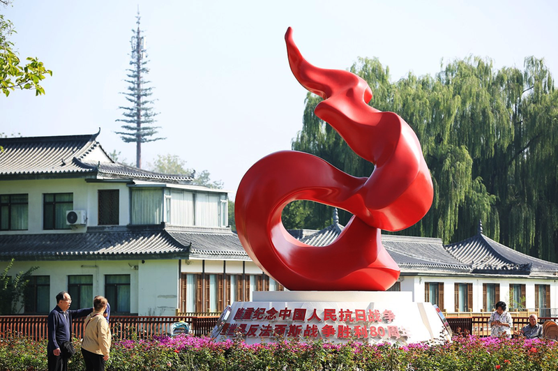 迁址后的雕塑与公园景致形成奇妙共鸣。记者在现场看到,烈焰般的雕塑主体倒映在身后的西湖水面,随波晃动的倒影宛若红旗漫卷,生动诠释着胜利的喜悦。湖面上野鸭群游、水波轻漾,与雕塑的庄严肃穆形成动静相宜的画面,从对岸望去,尽显祥和景致。“一进门就被这雕塑的气势打动了,倒影落在水里特别有感染力。”市民张女士一边拍照一边说,她特意带孩子前来参观,希望让孩子在实景中感受民族精神。文/记者康艳立摄影/雷博渊