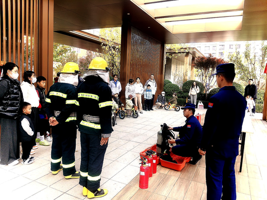 在琅山社区服务站门前空地,琅山社区、边府社区联合西山奥园金鹏顺发物业开展秋冬消防安全演练。物业主管安全的队长首先为底商和居民们详细讲解了消防安全知识,包括火灾的预防、火灾发生时的应急措施以及如何正确使用灭火器等消防器材。随后,在灭火实操环节,物业安保人员现场示范了灭火器的正确使用方法,并安排物业保安、保洁等工作人员亲自上手操作。现场热闹非凡,参与活动的人员均在活动中学习到了灭火器的使用方法,并在演练中成功扑灭了火源。