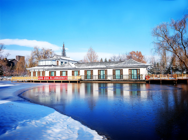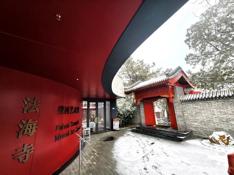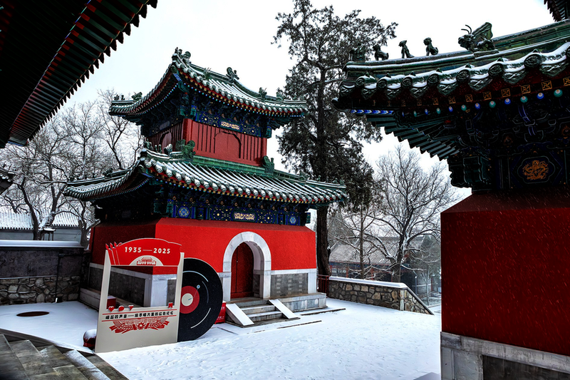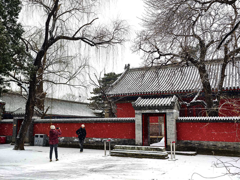 ▲石景山书院覆雪而立,红墙绿瓦映雪生辉。 摄影/张国振