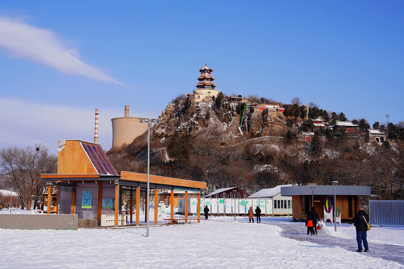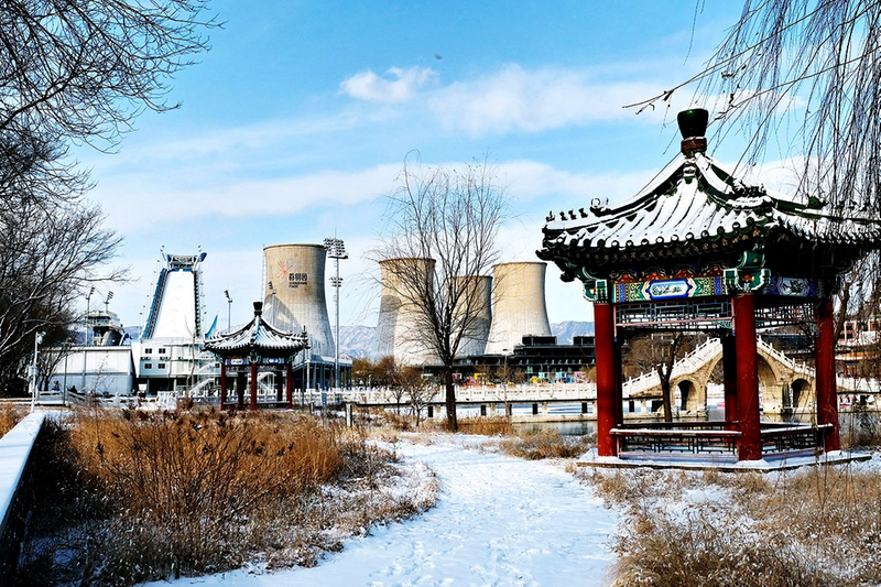 ▲飞檐映雪,冷却塔立。 摄影/王守斌
