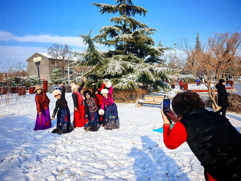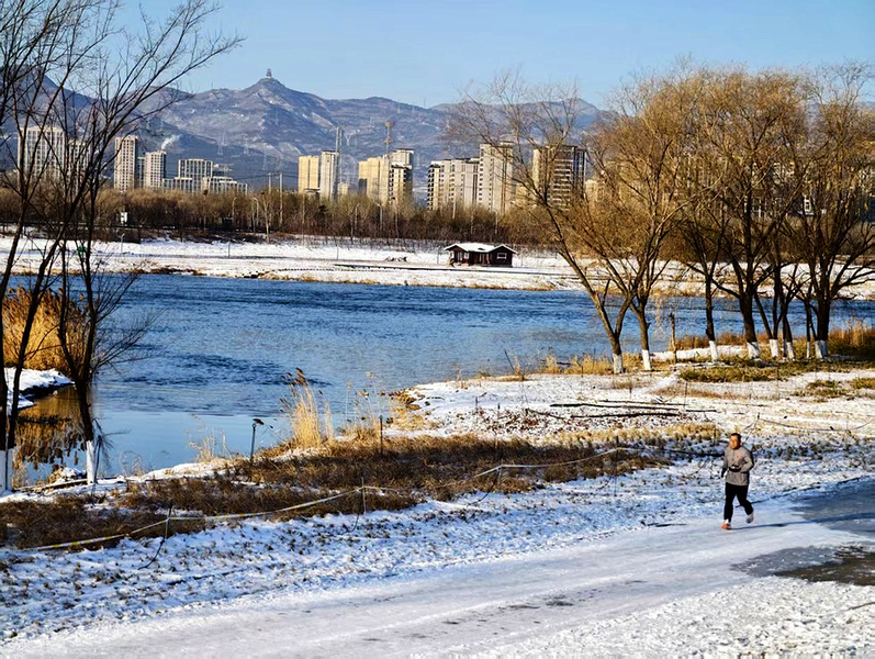 ▲雪后河畔,活力映冬景。 摄影/王诗维