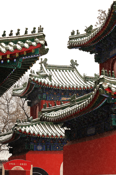 ▲初雪捻着轻柔,悄然漫过承恩寺的飞檐黛瓦。 摄影/王有毅