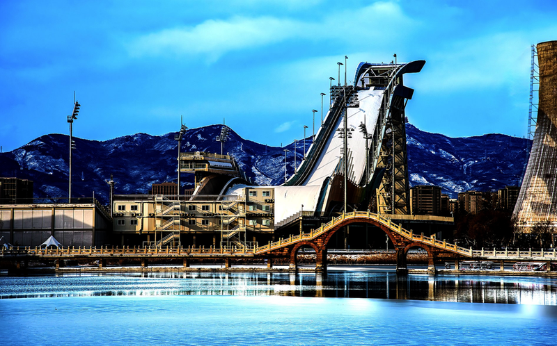 ▲雪天里,不喧不闹、宁静如画的滑雪大跳台。 摄影/曲汉名
