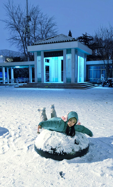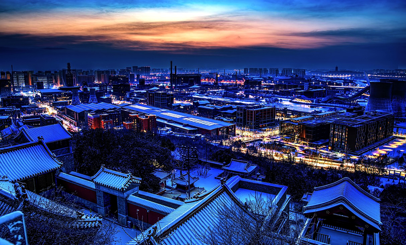 ▲银装覆首钢,灯火暖寒夜。 摄影/曲汉名
