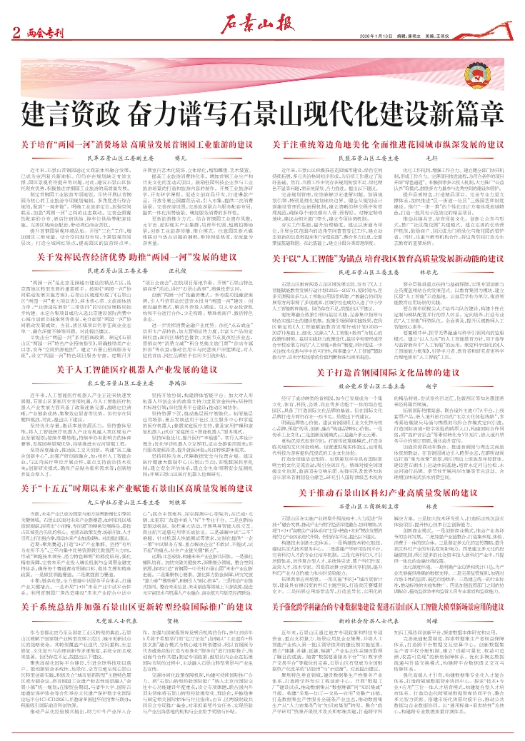 关于“十五五”时期以未来产业赋能石景山区高质量发展的建议