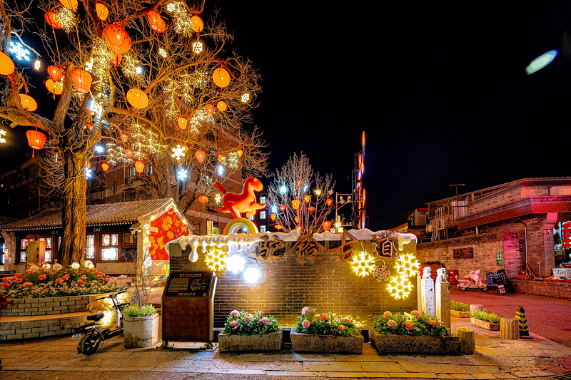 临近年根,石景山区年味渐浓。“我爱模式口”2026年模式口新春灯会点亮京西。灯笼高挂、光影流转,抬头见天阶夜色如水,低头赏古道繁华如旧,骏马昂首腾跃揭开新春序章,一场沉浸式的新年体验在此开启。灯海映着雪色,一步一景皆是古今交融的浪漫,仿佛踏入了一场流光漫雪的冬日童话。