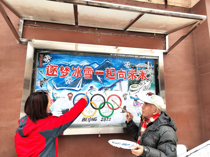 翻开画册,时光的齿轮缓缓转动……在重大节日和国际盛会到来之际,崔老师总能用灵动的笔触,在小黑板上勾勒出欢乐的场景:春节时,红彤彤的灯笼让整个社区都沉浸在浓浓的年味中;国庆时,鲜艳的五星红旗激发着每一个居民的爱国情怀;冬奥会时,冰雪与五环的结合更点燃着居民的体育热情… …